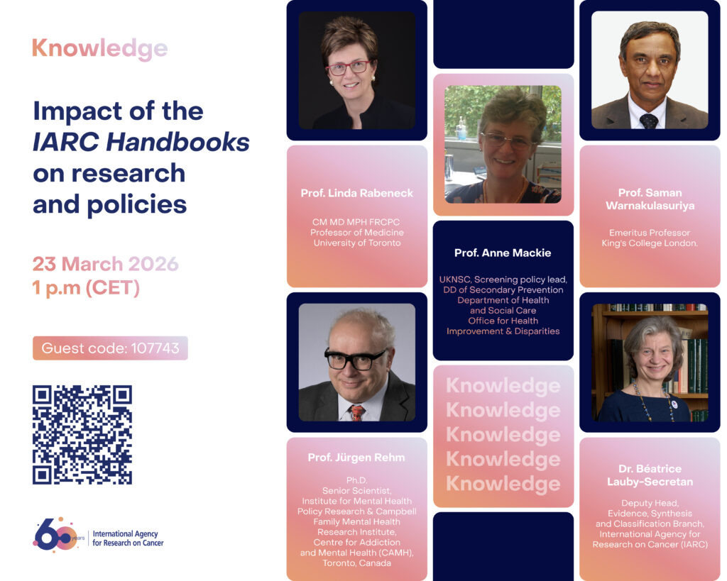 This webinar will highlight how knowledge generation, sharing, and translation into practice are essential to support evidence‑based decision‑making, strengthen cancer prevention strategies, and enable meaningful impact across diverse settings. Speakers will reflect on the influence of the Handbooks within their areas of work, and how participation in the programme contributes to advancing research, informing national and international recommendations, and shaping public health policies.